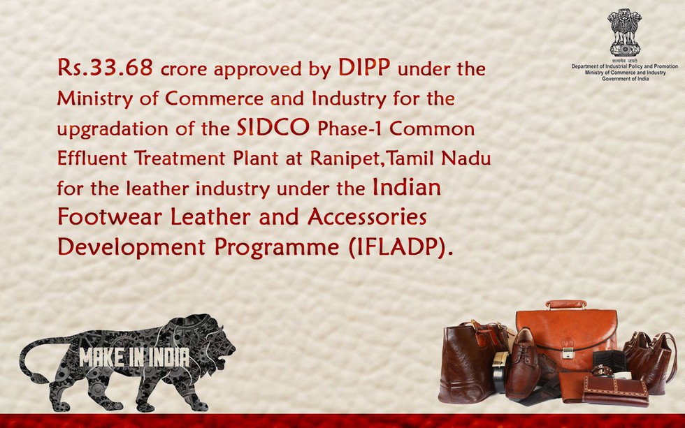 - Under the IFLADP four projects have been approved in Tamil Nadu by DIPP: upgradation of Tala Trichy Common Effluent Treatment Plant (CETP) at Trichy, Pallavaram CETP at Nagalkeni Chrompet, and SIDCO Phase-I CEPT at Ranipet and Perundurai leather industries Eco Security Pvt. Ltd. at Erode.