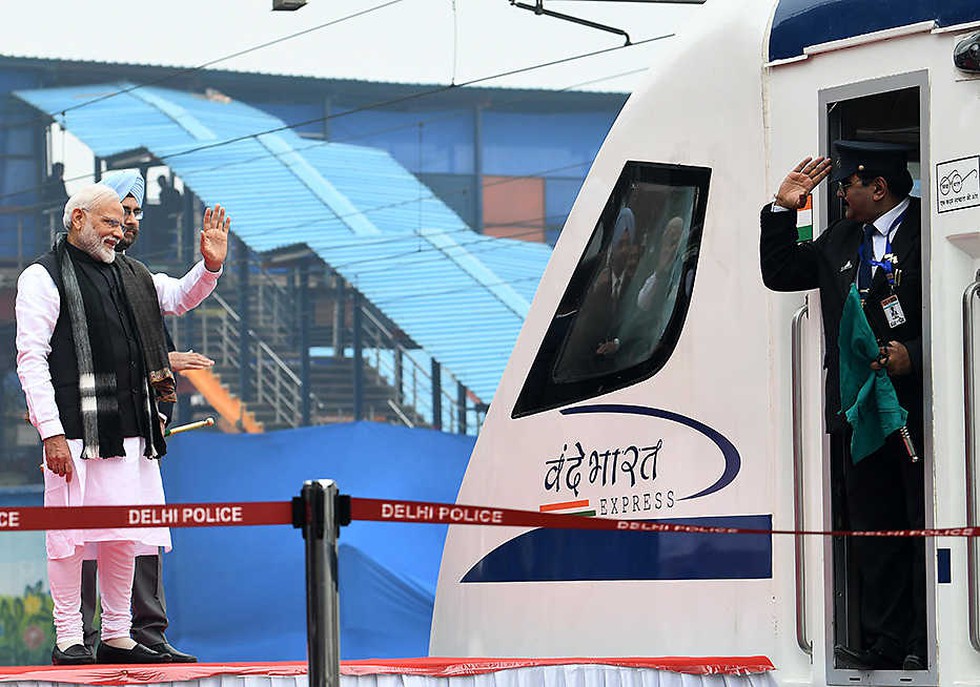 - It is India's first semi-high-speed train which will run from Delhi to Varanasi, with halts at Kanpur and Allahabad, at a maximum speed of 160 kmph by covering the distance in 8 hours.