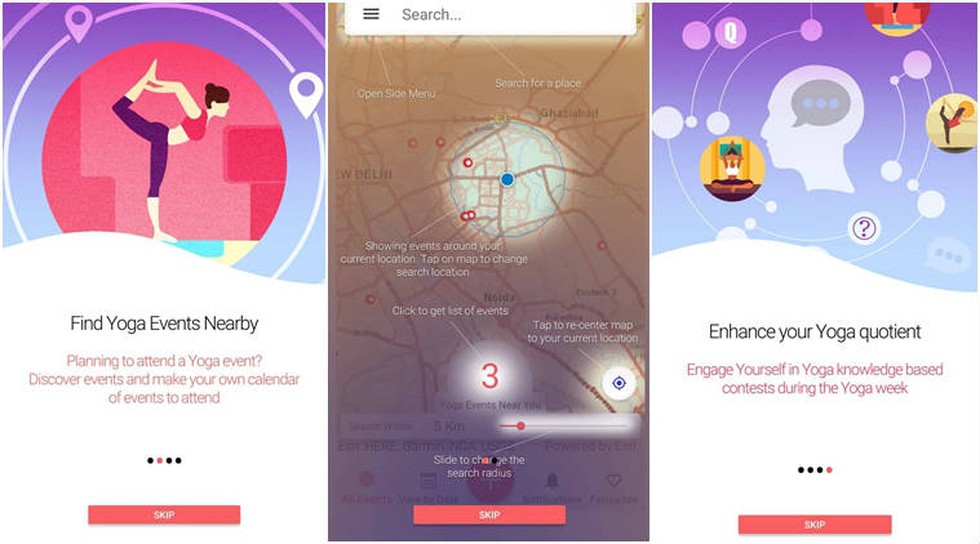 - people to locate yoga events, centres providing training and instructors within the preferred radius of their vicinity.