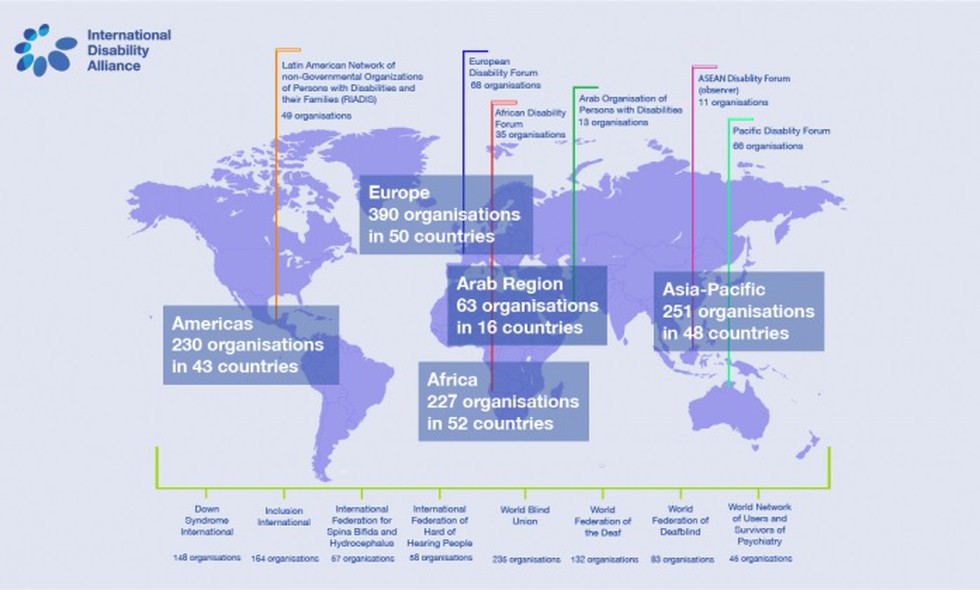 - IDA currently comprises eight global and six regional organizations of persons with disabilities (DPOs).
